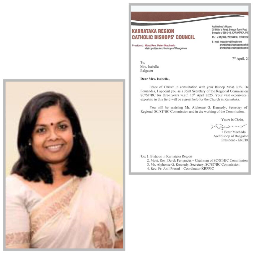 * *ಪೇಡೆ ನಗರಿಯ ಮಾನವ ಹಕ್ಕುಗಳ ಪ್ರತಿಪಾದಕಿಗೆ ಮಹತ್ವದ ಹುದ್ದೆ*/ *ಕರ್ನಾಟಕ ಕ್ಯಾಥೋಲಿಕ್ ಬಿಷಪ್ಸ್ ಕೌನ್ಸಿಲ್ನಿಂದ ನೇಮಕ*